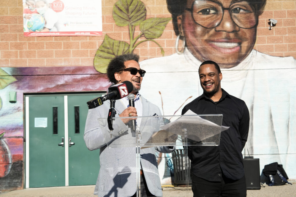 On April 8, 2026 we were proud to celebrate a new mural honoring the legacy of three significant people in South Providence’s history: Sgt. Cornel Young, Jr., Charlotte Woods, and B. Jae Clanton.